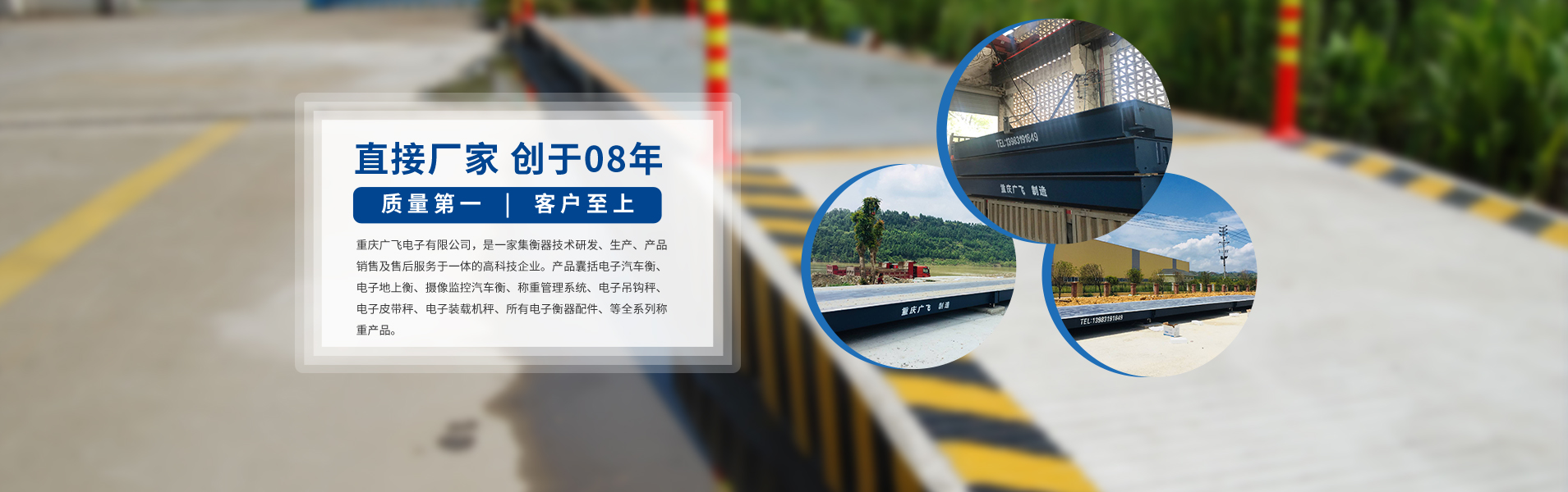 重慶廣飛電子有限公司,是一家集衡器生產(chǎn)、技術(shù)研發(fā)、產(chǎn)品銷(xiāo)售及售后服務(wù)于一體的高科技企業(yè)。 產(chǎn)品囊括電子汽車(chē)衡(電子地磅)、無(wú)人值守地磅稱(chēng)重管理系統(tǒng)、電子地上衡、智能稱(chēng)重管理系統(tǒng)、電子軌道衡、電子吊秤、電子臺(tái)秤、電子皮帶秤、鏟車(chē)秤、公路超載超限系統(tǒng)等全系列稱(chēng)重產(chǎn)品。